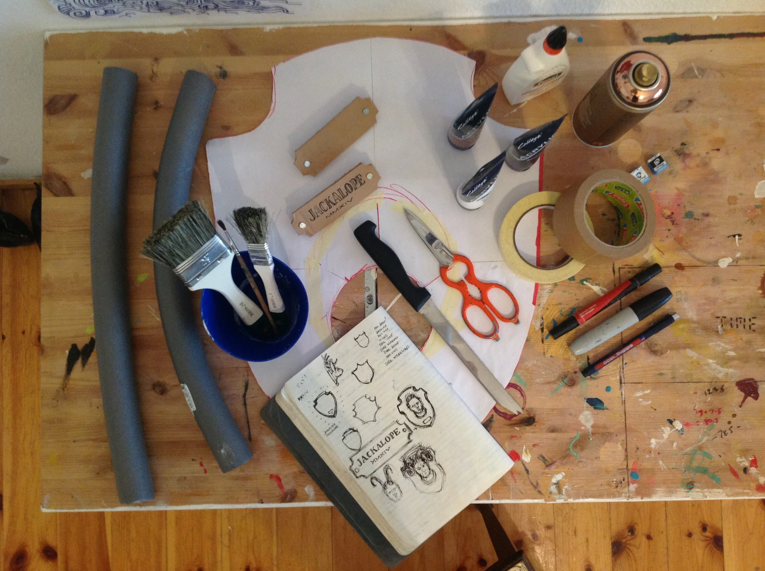 Based on this reference material, I used cardboard, box tape, acrylic paint, white glue, patience, finishing nails, pipe insulation and a box knife to construct the crests and plaques.